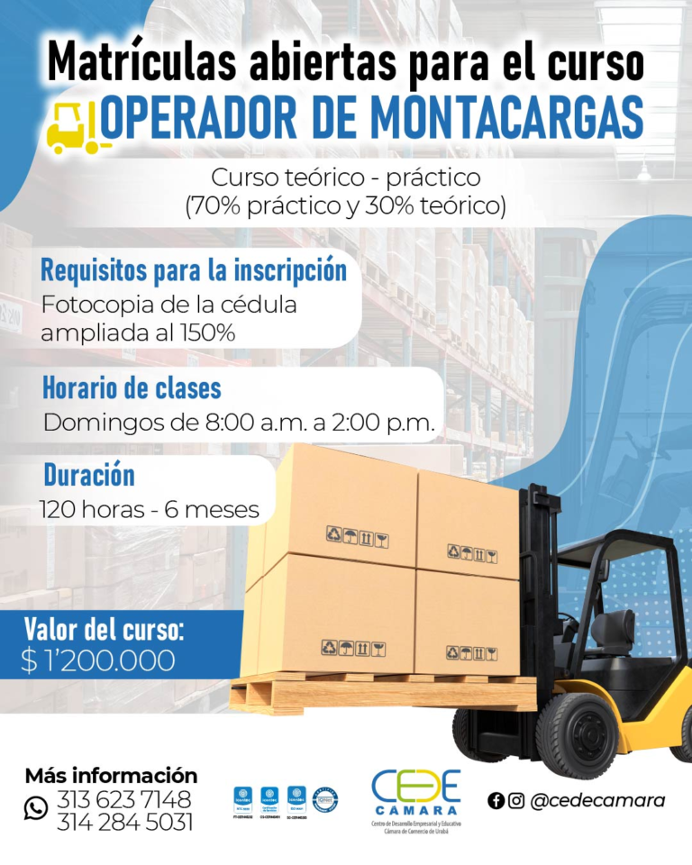¡Matrículas Abiertas para el Curso de Operador de Montacargas! ¡Matrículas Abiertas para el Curso de Operador de Montacargas! ¡Aprovecha esta oportunidad para adquirir habilidades esenciales y destacar en el mundo